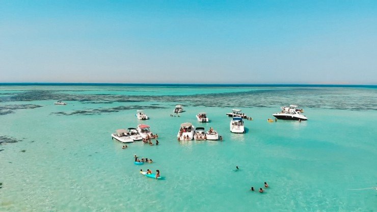 Begin your peaceful Red Sea adventure at 8:00 AM with a comfortable air-conditioned transfer from your hotel in Hurghada straight to El Gouna Marina. Step onto your cozy private-style boat, perfect for two families who enjoy privacy and small-group trips. Enjoy breakfast served on board as you sail across the bright blue water, along with refreshing drinks. You will stop at two exciting snorkeling spots, where your guide will help you explore colorful fish and beautiful coral reefs using the included snorkeling equipment. After snorkeling, enjoy a tasty lunch and fresh fruits served on the boat. Then relax as you arrive at Bayoud Island, known for its calm shallow water, perfect for swimming, relaxing, and taking great photos. At 4:00 PM, your boat returns to El Gouna Marina, where your transfer will take you back to your Hurghada hotel with wonderful memories of a peaceful and luxurious day at sea