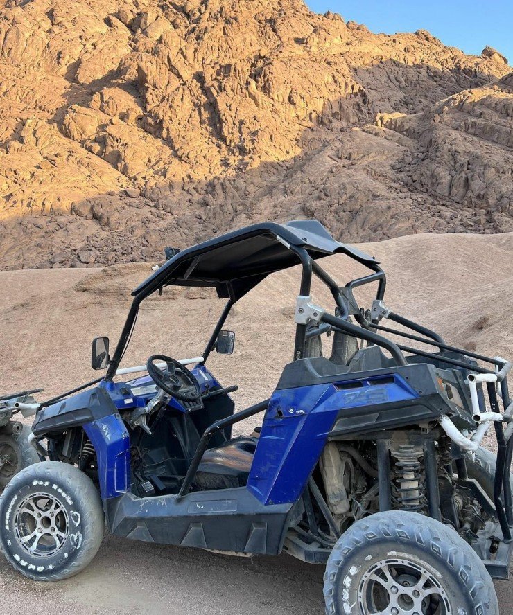 Enjoy an exclusive private desert adventure made just for you and your favorite person with our Private Mix Quad and Buggy Safari in Sharm El Sheikh, perfect for families and kids-friendly fun. This special tour lets two guests share an exciting experience by taking turns riding a powerful quad bike and a thrilling sand buggy, driving across beautiful golden sand dunes in total privacy. Feel the adventure as you explore the open desert, stop anytime for amazing photos with unique rock formations, and enjoy the freedom of a private ride without crowds. After the desert fun, relax together in a traditional Bedouin tent, enjoy sweet Arabic tea, and learn about simple desert life before heading back comfortably to your hotel. This private quad and buggy safari in Sharm El Sheikh is a top desert experience combining fun, safety, adventure, and unforgettable desert views, all designed to be easy, exciting, and enjoyable for kids and adults alike.